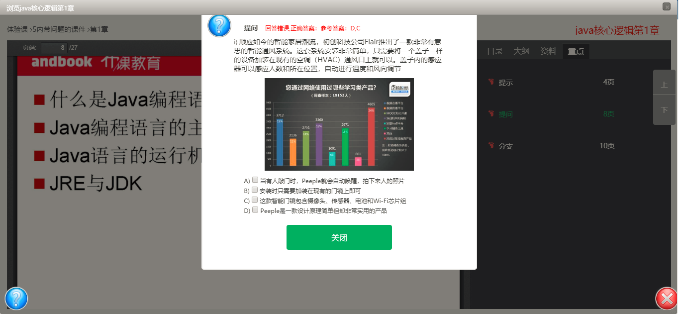 不論視頻還是文檔,您可以在希望學(xué)習(xí)的地方插入提問,這樣當(dāng)學(xué)生學(xué)習(xí)到這里時,就會彈窗提示??梢杂行У膸椭鷮W(xué)習(xí)者注意到重難點,也可以有效的監(jiān)控學(xué)習(xí)的效果。